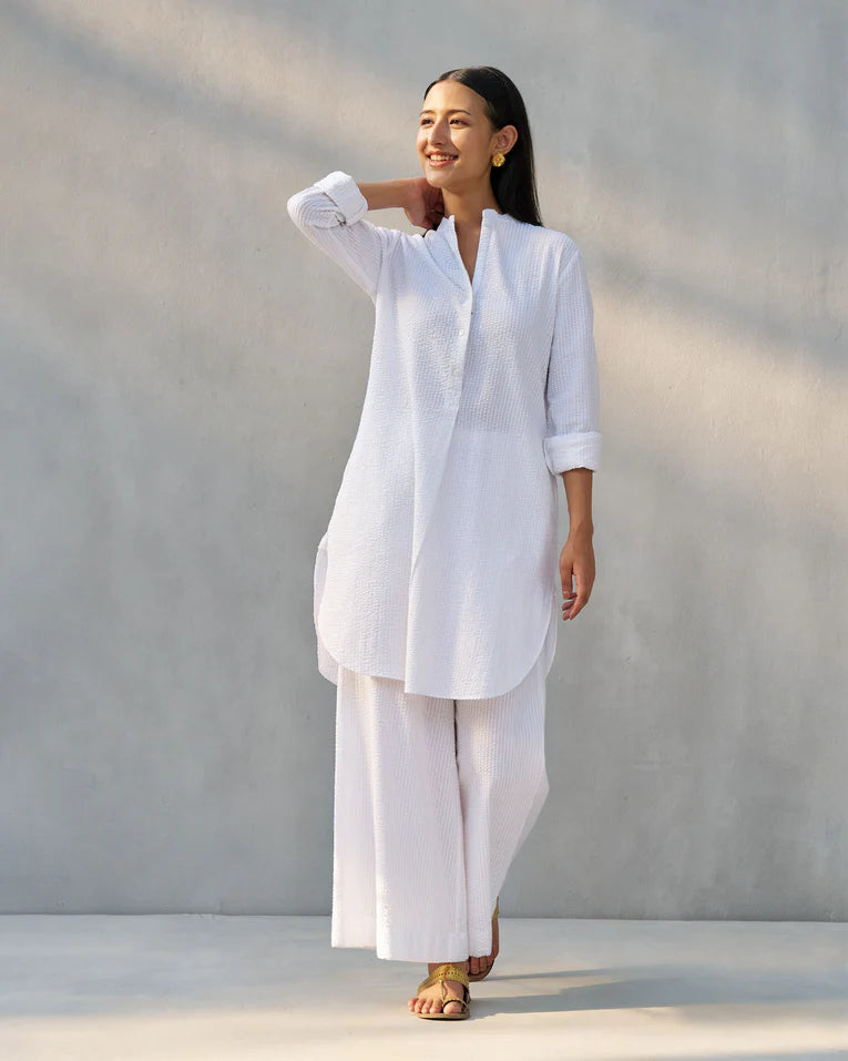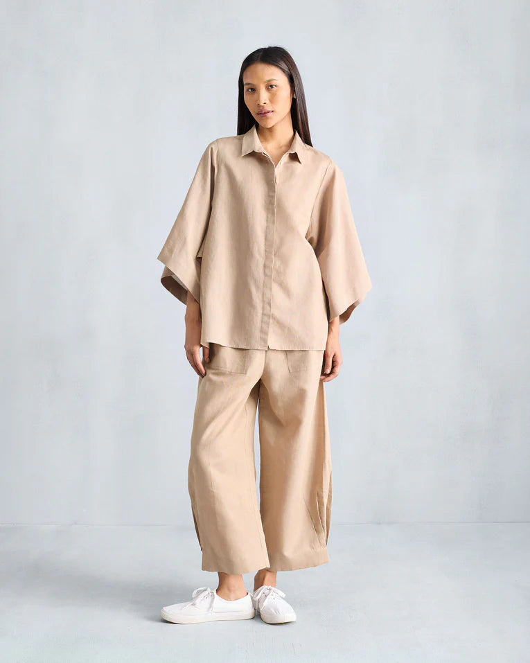 The Drop Armhole Shirt Set – Understated Chic in Beige