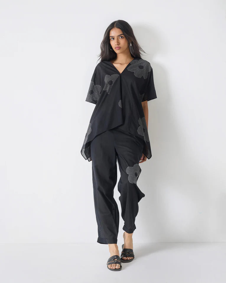 The Curved Hem Top Set – Bold Elegance in Black & White