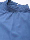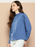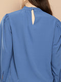 Encore – High Neck Cuffed Sleeves Top (Blue)